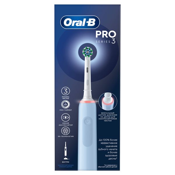 Щетка зубная электрическая 3772 с зарядным устройством 3757 Pro 3 CrossAction D505.513.3 Oral-B/Орал-би