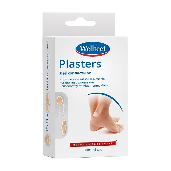 Набор пластыри мозольный гидроколлоидный Веллфит 5,5 х 3,7см + 2,0 х 6,5см 3+3шт