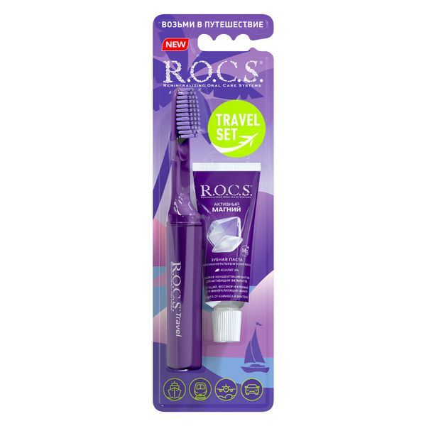 Набор R.O.C.S./РОКС: Щетка зубная складная Travel+Паста зубная активный магний 25г