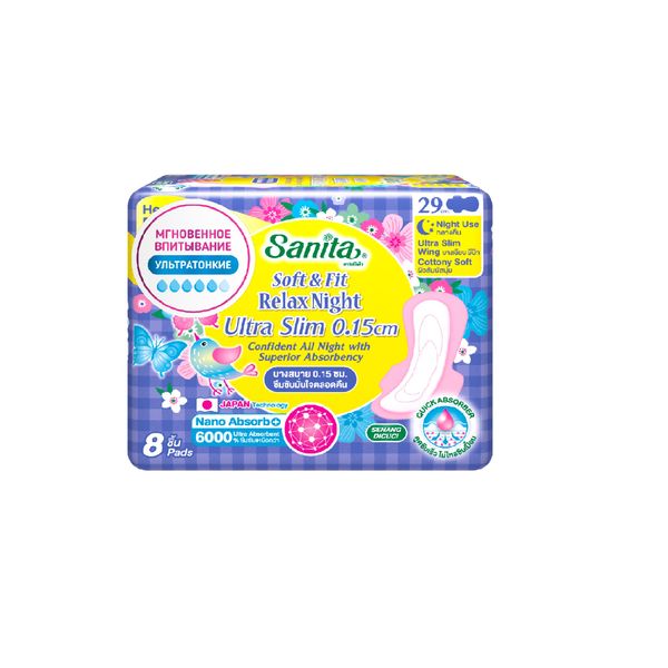 Прокладки гигиенические ультратонкие ночные Night Ultra Slim Relax Soft&Fit Sanita/Санита 29см 8шт