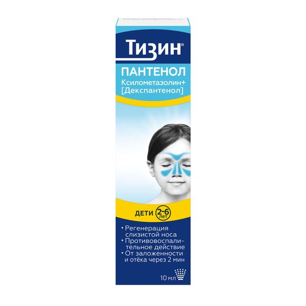 Тизин Пантенол для детей спрей назальный дозированный 0,05мг+5мг/доза 10мл