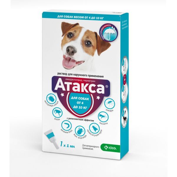 Атакса капли на холку для собак от 4 до 10кг 1мл