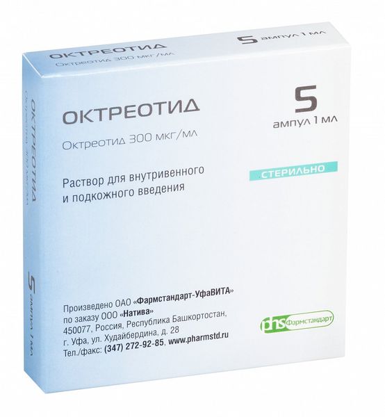 Октреотид раствор для в/в и п/к введ. амп. 300мкг/мл 1мл 5шт