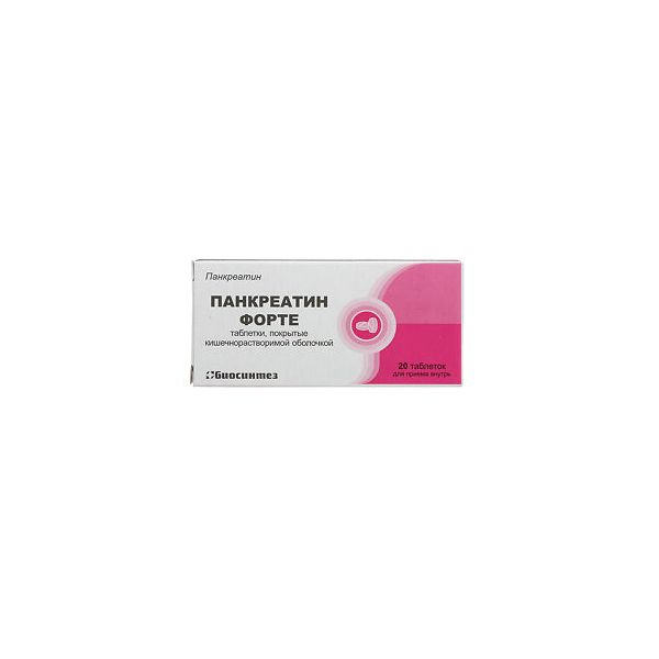 Панкреатин форте таблетки п/о кишечнораств. 20шт