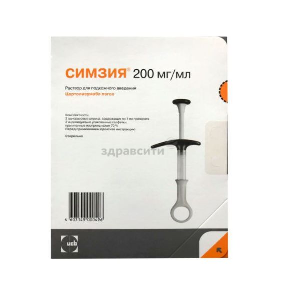 Симзия раствор для п/к введ. шприц 200мг/мл 1мл 2шт+Салфетки 2шт+Книжечка картонная Бумажник