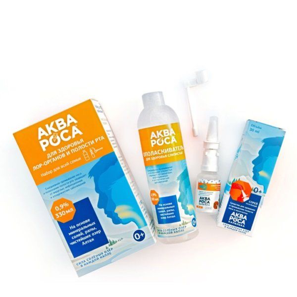 Набор Аквароса: Ополаскиватель 300мл+Спрей назальный 30мл+Насадка для полости рта и гортани раствор изотонические 0,9%