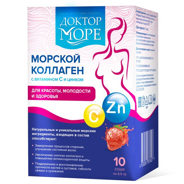 Коллаген морской с витамином С и цинком вкус клубники Доктор Море саше-пакет 6,5г 10шт