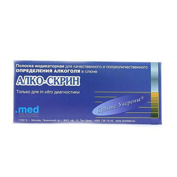 Полоска индикаторная для качественного и полуколичественного определения алкоголя в слюне Алко-Скрин