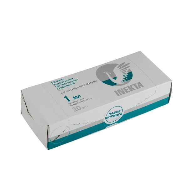 Шприц инсулиновый 3-х компонентный стерильный с иглой 26G*1/2 Inekta 0,45х13мм 1мл 20шт