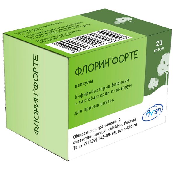 Флорин Форте капсулы 50млн.КОЕ+50млн.КОЕ/капсула 20шт