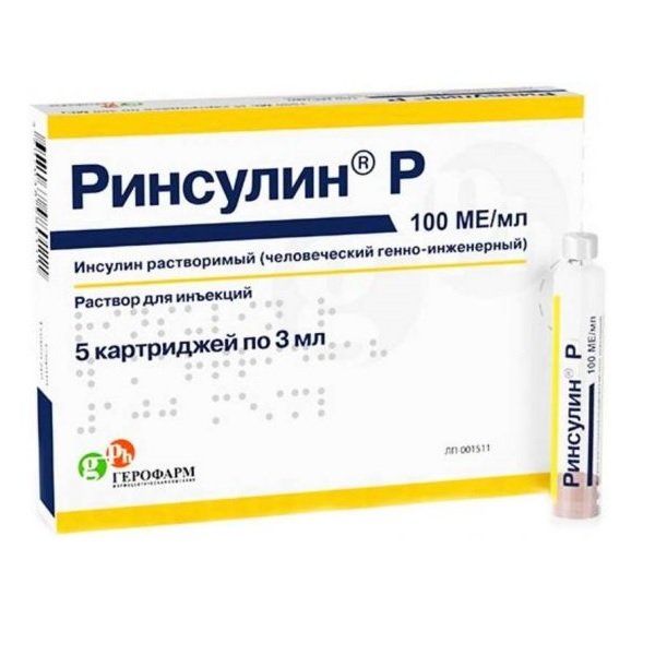 Ринсулин Р раствор для инъекций картридж 100МЕ/мл 3мл 5шт+Шприц-ручка Ринастра