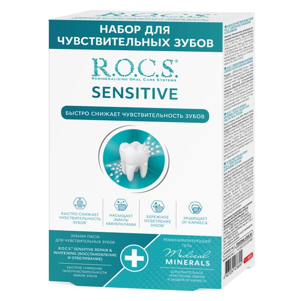 Набор R.O.C.S./РОКС: Паста зубная восстановление и отбеливание 64г+Гель для укрепления зубов Medical Minerals 25г