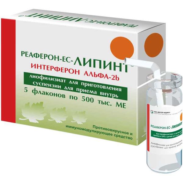 Реаферон-ЕС-Липинт лиофилизат для приг. суспензии для приема внутрь 500тыс.МЕ 5шт