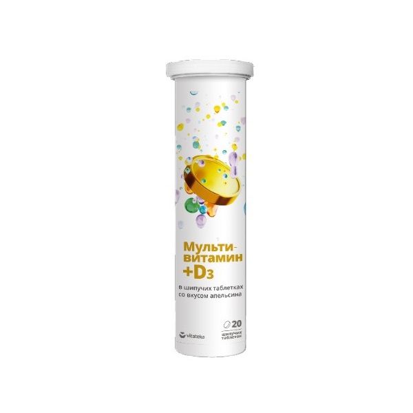 Мультивитамин+Д3 апельсиновые Vitateka/Витатека таблетки шипучие 20шт