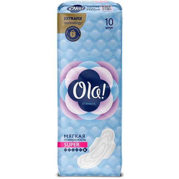 Прокладки женские гигиенические мягкая поверхность Classic wings Super Ola! 10шт
