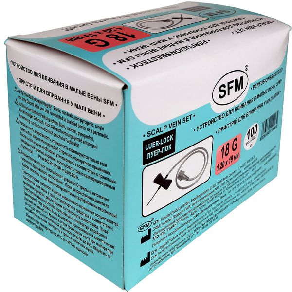 Катетер для вливания в малые вены игла-бабочка стерильный 18G SFM 1,2х19мм 100шт