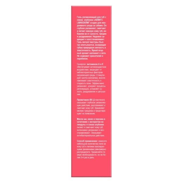 Гель увлажняющий для губ с соком клубники Librederm/Либридерм Аевит 20мл