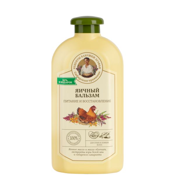 Бальзам для сухих и ломких волос питание и восстановление яичный Сибирская травница Рецепты бабушки Агафьи 500мл