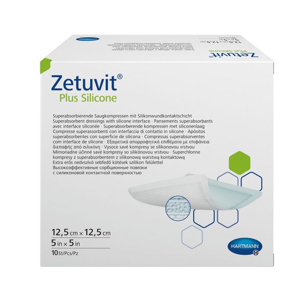 Повязка суперабсорбирующая с контактным слоем из силикона Silicone Plus Zetuvit/Цетувит 12,5х12,5см 10шт