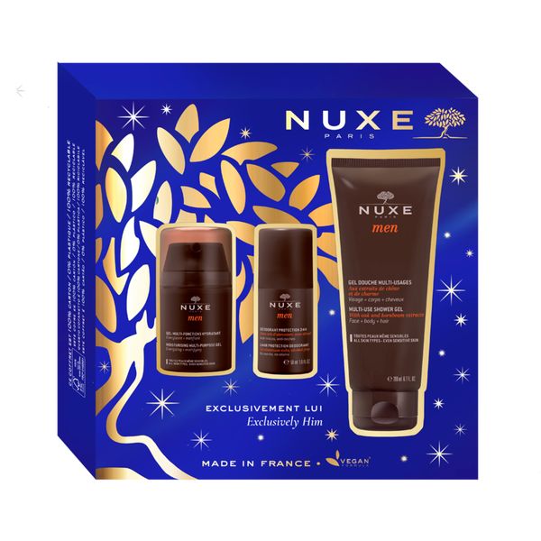 Набор Men Nuxe/Нюкс: Дезодорант шариковый 24 часа 50мл+Гель для душа 200мл+Гель для лица увлажняющий 50мл