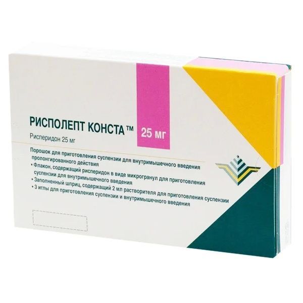 Рисполепт Конста порошок для приг. суспензии для в/м введ. пролонг. действ. 25мг+Растворитель 2мл+Игла 2шт+Устройство безыгольное
