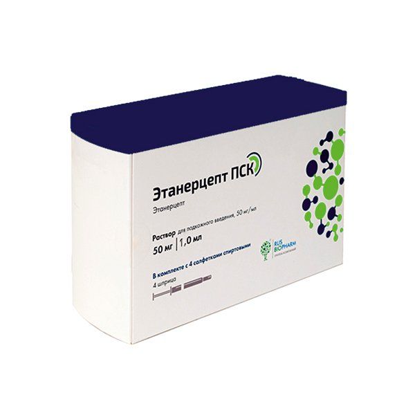 Этанерцепт ПСК раствор для п/к введ. шприц 50мг/мл 0,5мл 4шт