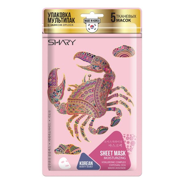 Маска-тон для лица на тканевой основе морской конек, глутатион и арбутин Shary/Шери 90г 5шт