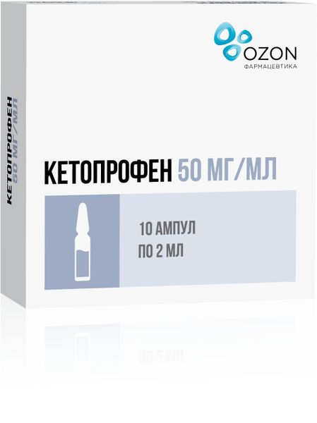 Кетопрофен р-р для в/в и в/м введ. 50мг/мл амп. 2мл №10