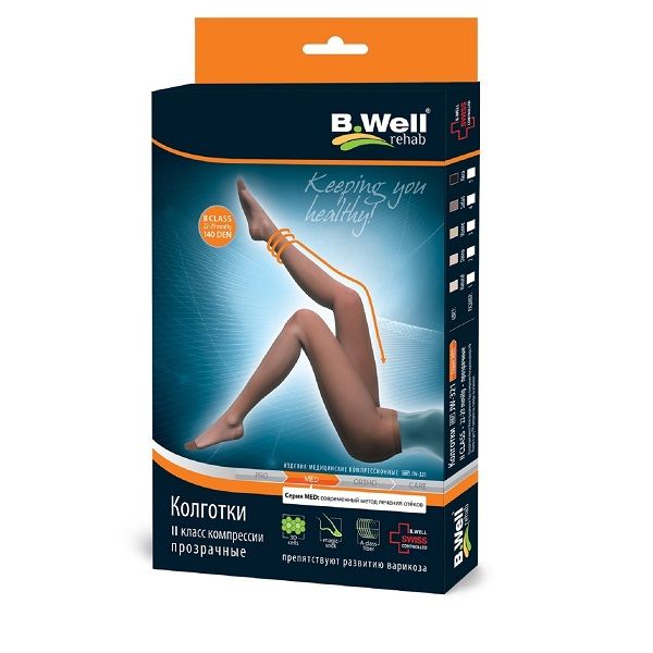 Колготы компрессионные 2 класс JW-321 Med прозрачные телесные B.Well/Би Велл р.4