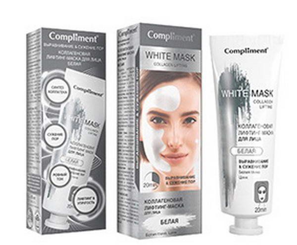 Лифтинг-маска для лица коллагеновая Белая White mask Выравнивание&Сужение пор, Compliment 80мл 20шт