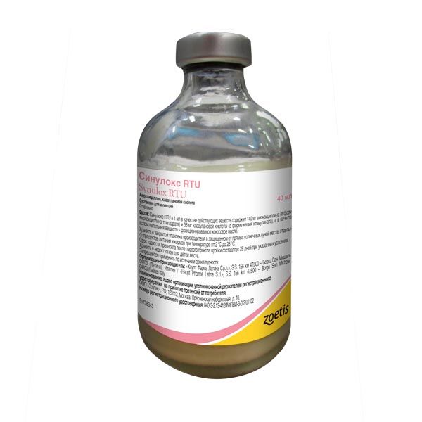 Синулокс раствор для инъекций для ветеринарного применения 40мл